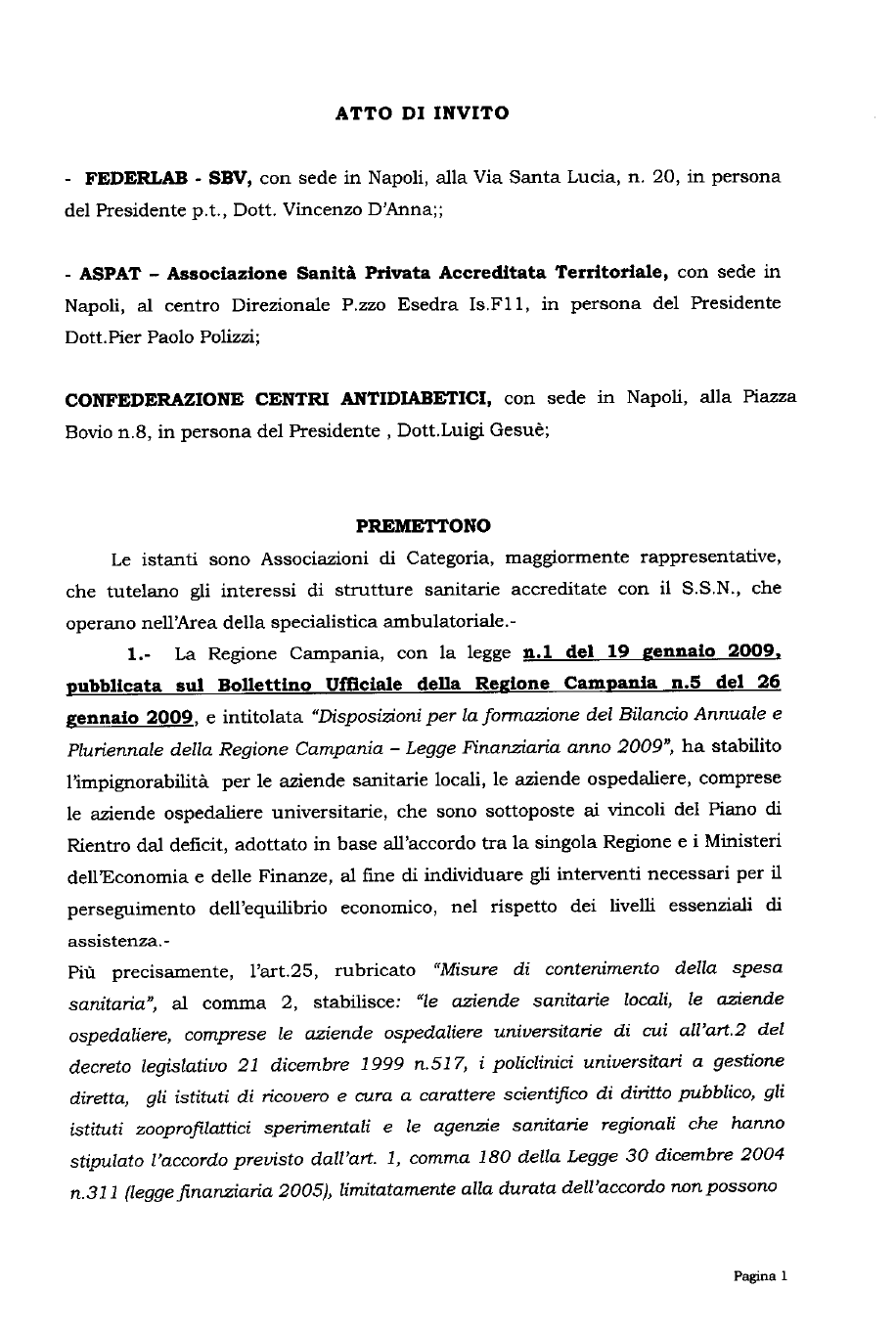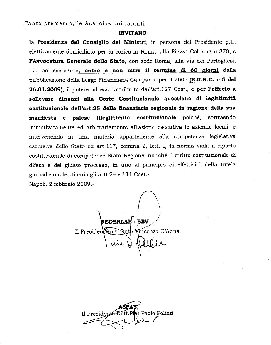 Qui di seguito pubblichiamo l’Atto di Invito ad intervenire con massima urgenza che FederLab-SBV, ASPAT e Confederazione Centri Antidiabete hanno indirizzato alla Presidenza del Consiglio dei Ministri per sollecitare l’intervento del Governo ad impugnare, per manifesto profilo di incostituzionalità ed incompetenza, l’art. 25 della Legge Regionale n. 1 del 19.01.2009.