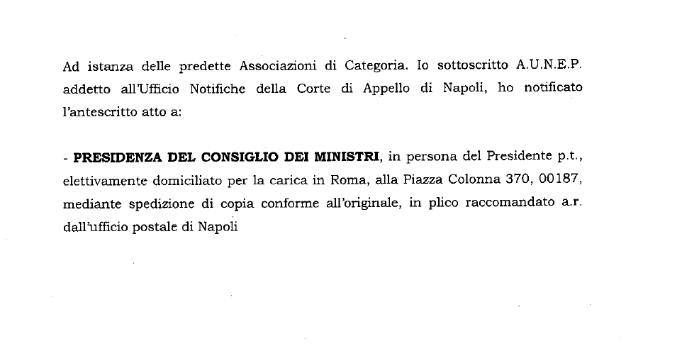 Regione Campania: Art. 25 Legge n. 1 del 19.01.2009. Impignorabilità fondi. Intervento presso la Presidenza del Consiglio dei Ministri.